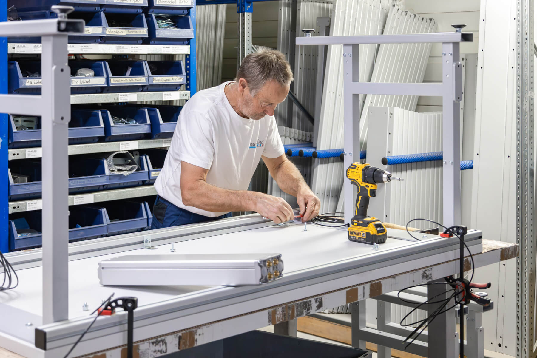 Innerhalb von 4-6 Wochen setzen wir die gemeinsam geplante Lösung effizient um. Unser qualifiziertes Montageteam sorgt für eine fachgerechte Installation, sodass Ihre neuen Arbeitsplatzsysteme sofort einsatzbereit sind. Bei Bedarf nehmen wir auch vor Ort letzte Feinabstimmungen vor, um sicherzustellen, dass alles perfekt passt.